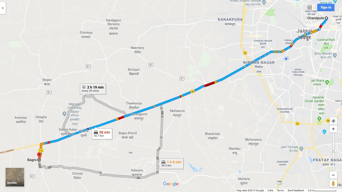 | Jaipur to Bagru (Full Route) | Chandpole to Bagru |