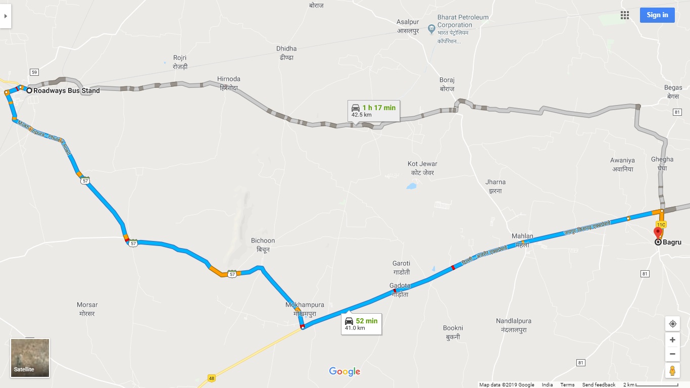 | Phulera to Bagru Via Boraj | Phulera to Bagru Via Mokhampura |